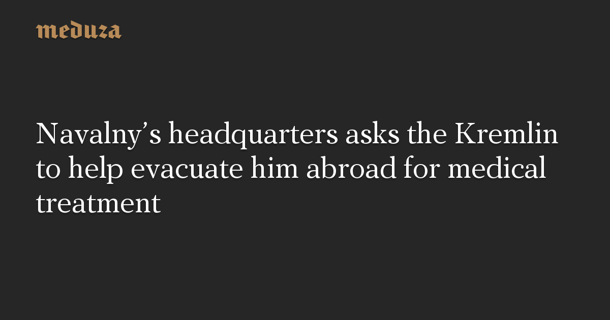 Navalny’s headquarters asks the Kremlin to help evacuate him abroad for medical treatment
