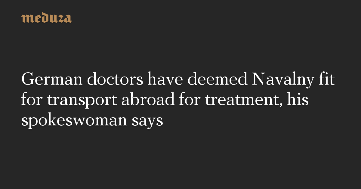 After examining Alexey Navalny, a team of intensive care doctors from Germany have concluded that he can be transported, the opposition politician’s spokeswoman, Kira Yarmysh, wrote on Twitter.
