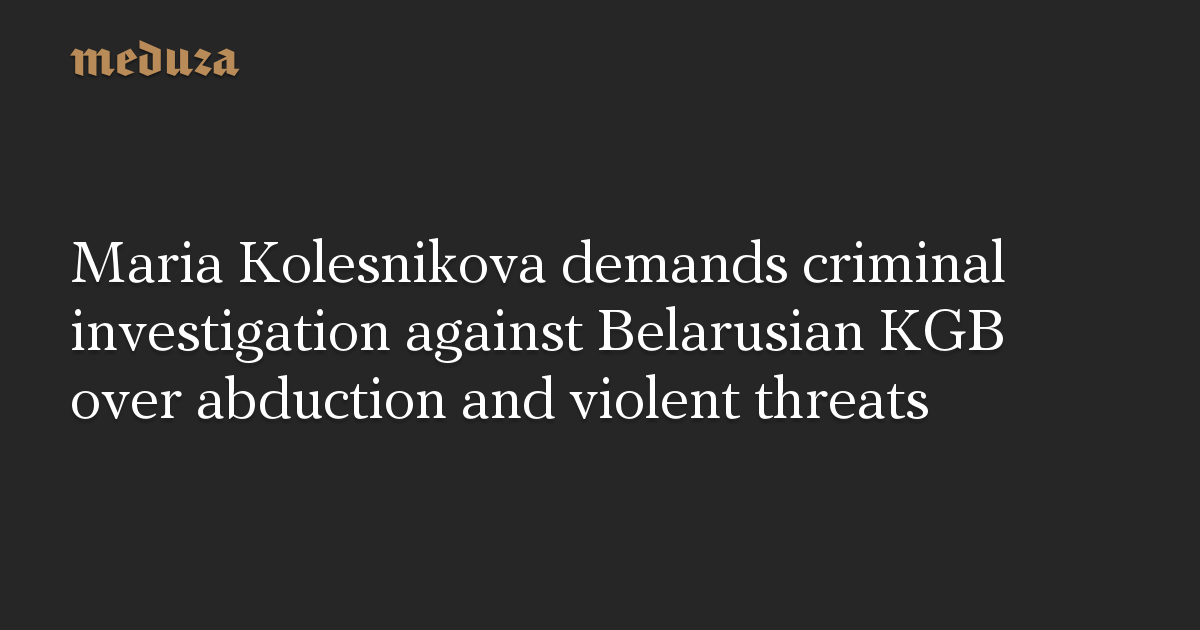 Maria Kolesnikova demands criminal investigation against Belarusian KGB over abduction and violent threats