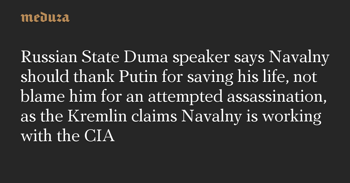 Russian State Duma speaker says Navalny should thank Putin for saving his life, not blame him for an attempted assassination, as the Kremlin claims Navalny is working with the CIA