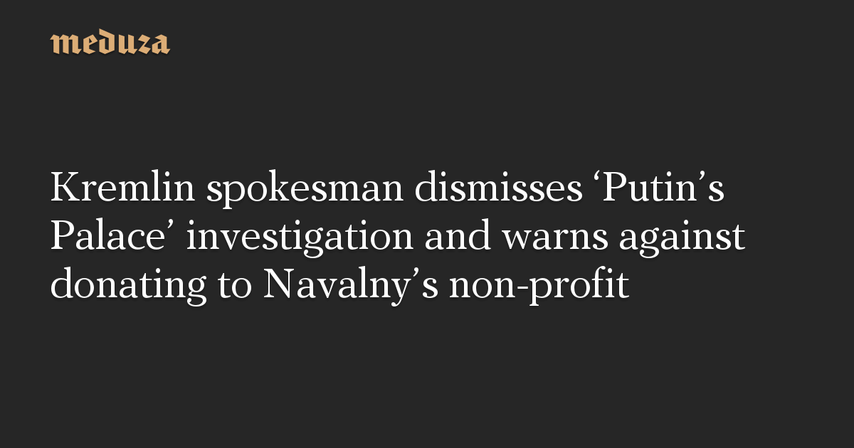 Kremlin spokesman dismisses ‘Putin’s Palace’ investigation and warns against donating to Navalny’s non-profit