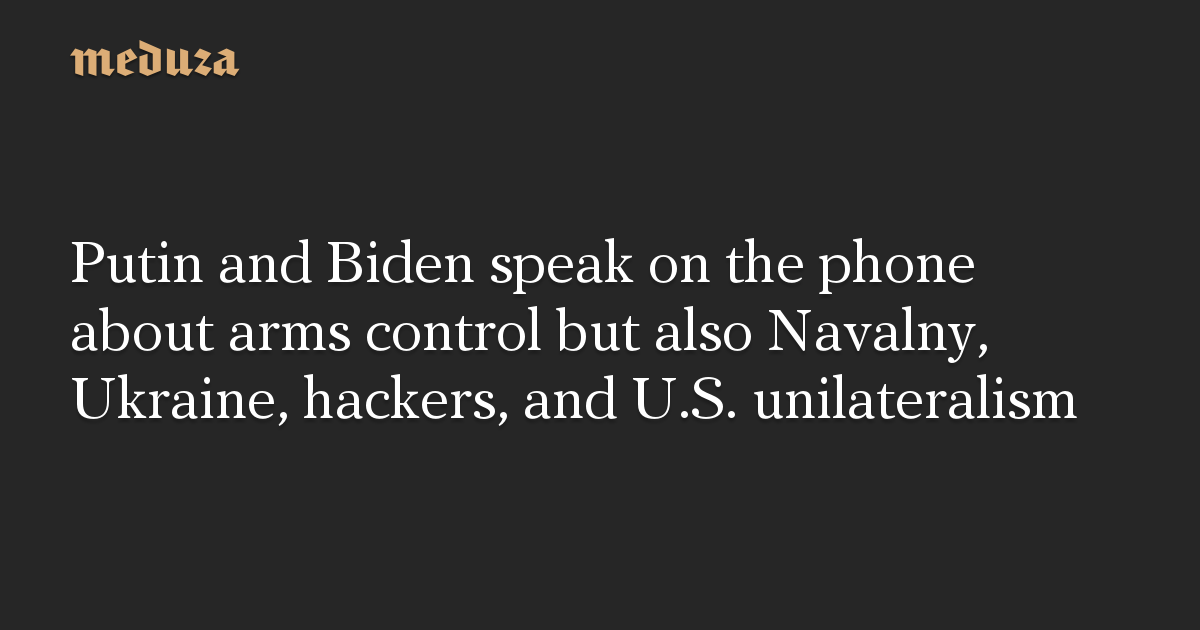 Putin and Biden speak on the phone about arms control but also Navalny, Ukraine, hackers, and U.S. unilateralism