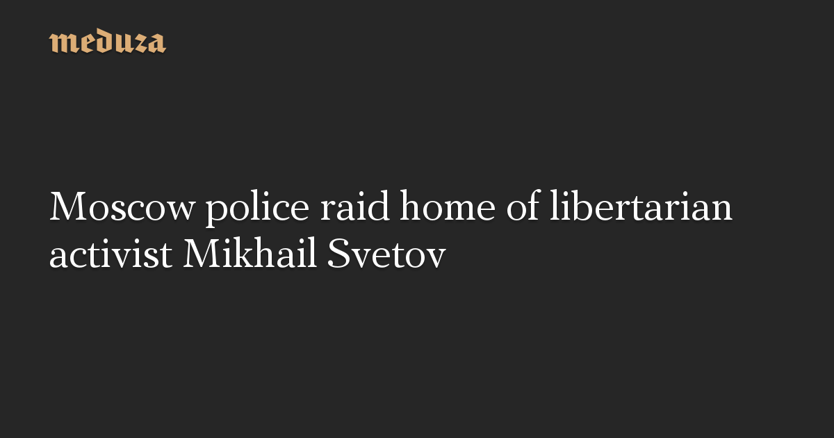 Police officers in Moscow raided the home of Mikhail Svetov on Saturday night, April 24, searching his apartment for several hours before bringing him in for overnight questioning. The libertarian activist and “Civil Society” movement chairman said on Twitter that officers went door-to-door, asking his neighbors to testify against him in their investigation, but everyone apparently refused.