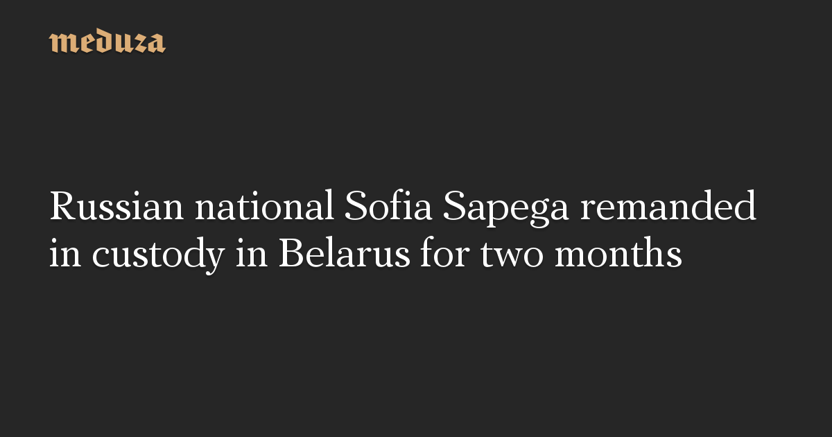 Russian national Sofia Sapega has been remanded in custody in Belarus for two months, her lawyer Alexander Filanovich told RBC on May 25. Sapega was arrested in Minsk on May 23 along with Belarusian journalist Roman Protasevich, after being removed from a Ryanair flight that was forced to land in Belarus.