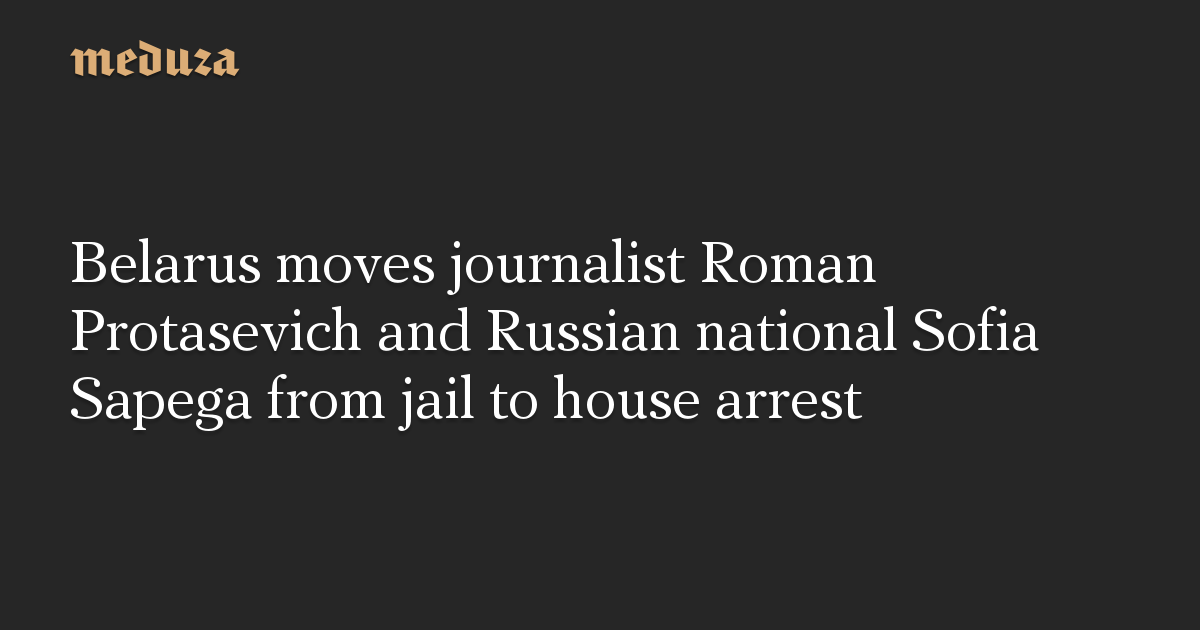 After a month in pre-trial detention, Belarusian opposition journalist Roman Protasevich and his girlfriend, Russian student Sofia Sapega, have been placed under house arrest in Minsk. The two were detained in the capital on May 23, after their Ryanair flight was forced to land in Belarus.
