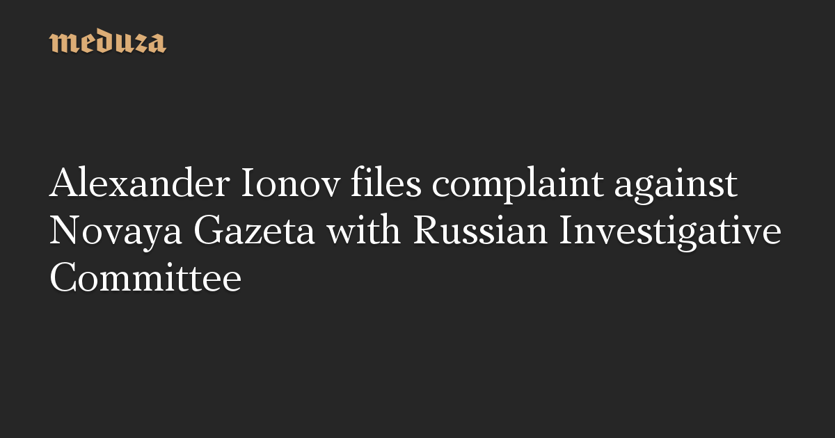 Alexander Ionov files complaint against Novaya Gazeta with Russian Investigative Committee