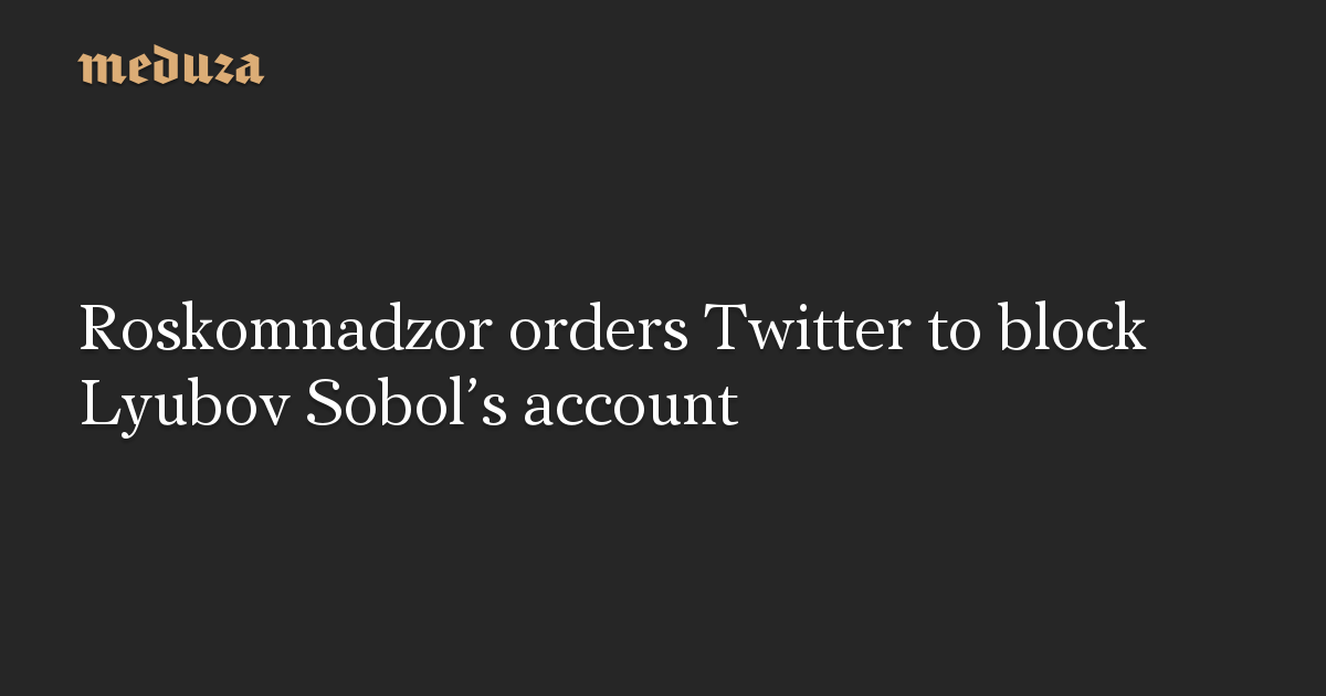 Russian opposition politician Lyubov Sobol says that the country’s federal censor, Roskomnadzor, sent a notice to Twitter ordering the social network to block her account.