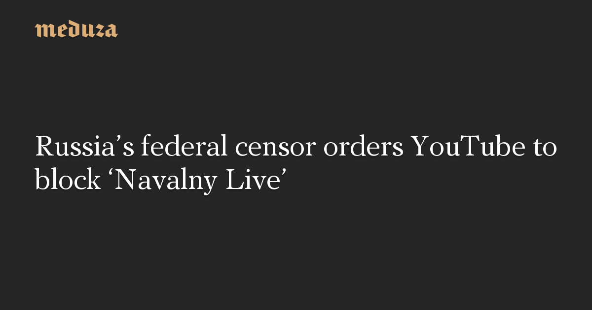 Russia’s federal censorship agency, Roskomnadzor, has ordered YouTube to block Alexey Navalny’s popular channel “Navalny Live.” This was reported by the channel’s producer, Lyubov Sobol — in a YouTube video.