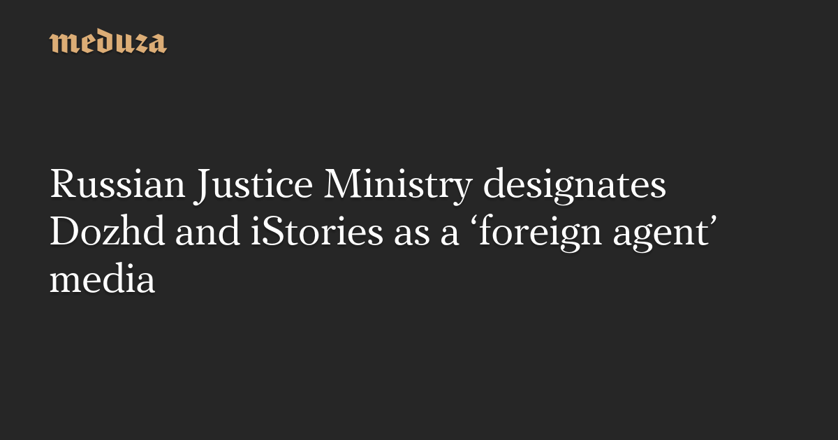 Russian Justice Ministry designates Dozhd and iStories as a ‘foreign agent’ media