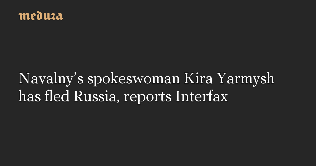 Alexey Navalny’s spokeswoman Kira Yarmysh has left Russia, Interfax reported on Monday, August 30, citing two informed sources.