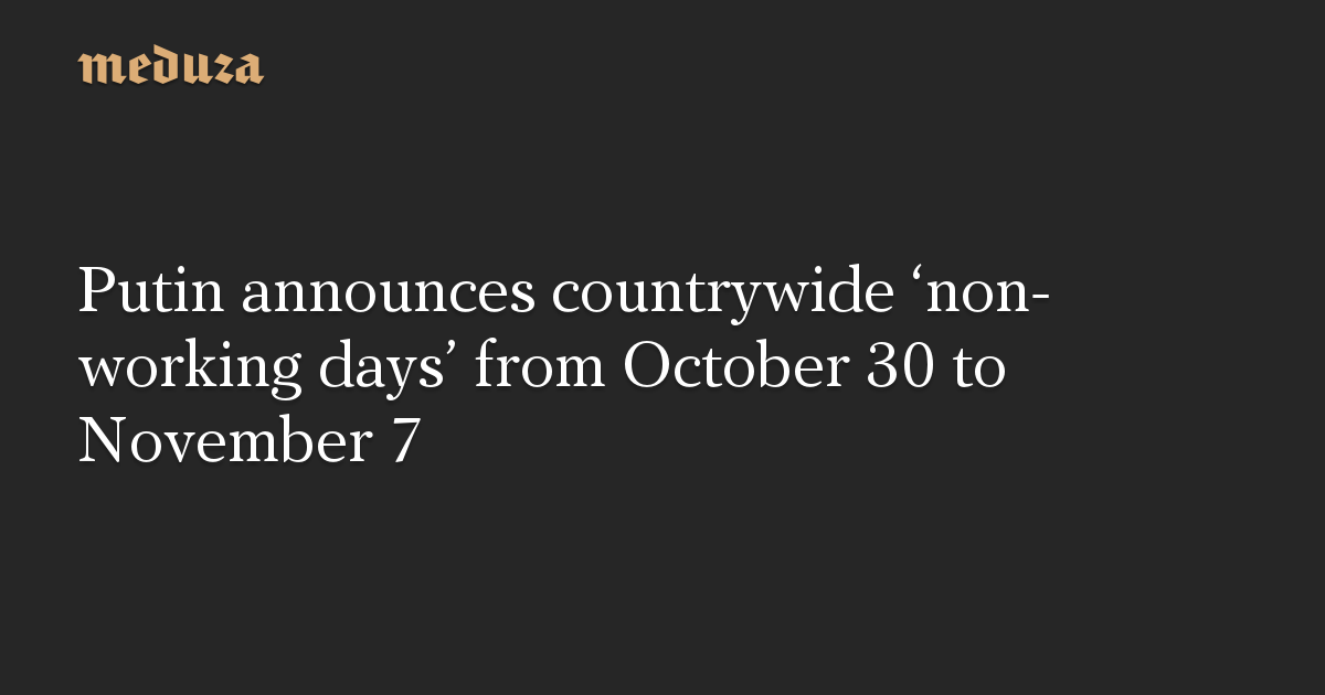Against the backdrop of Russia reporting another daily coronavirus death record, President Vladimir Putin has announced that the country will have paid “non-working days” from Saturday, October 30 to Sunday, November 7.