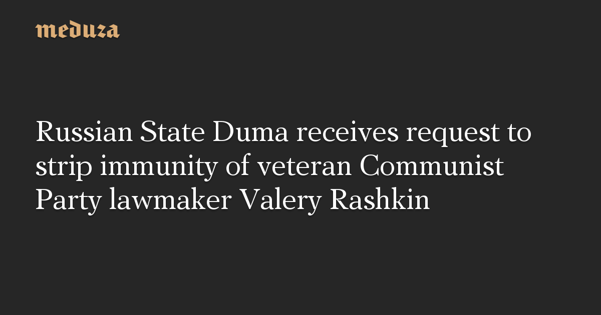 The Russian Attorney General’s Office submitted a request to the State Duma to remove the parliamentary immunity of Valery Rashkin, a veteran lawmaker from the Communist Party (KPRF).