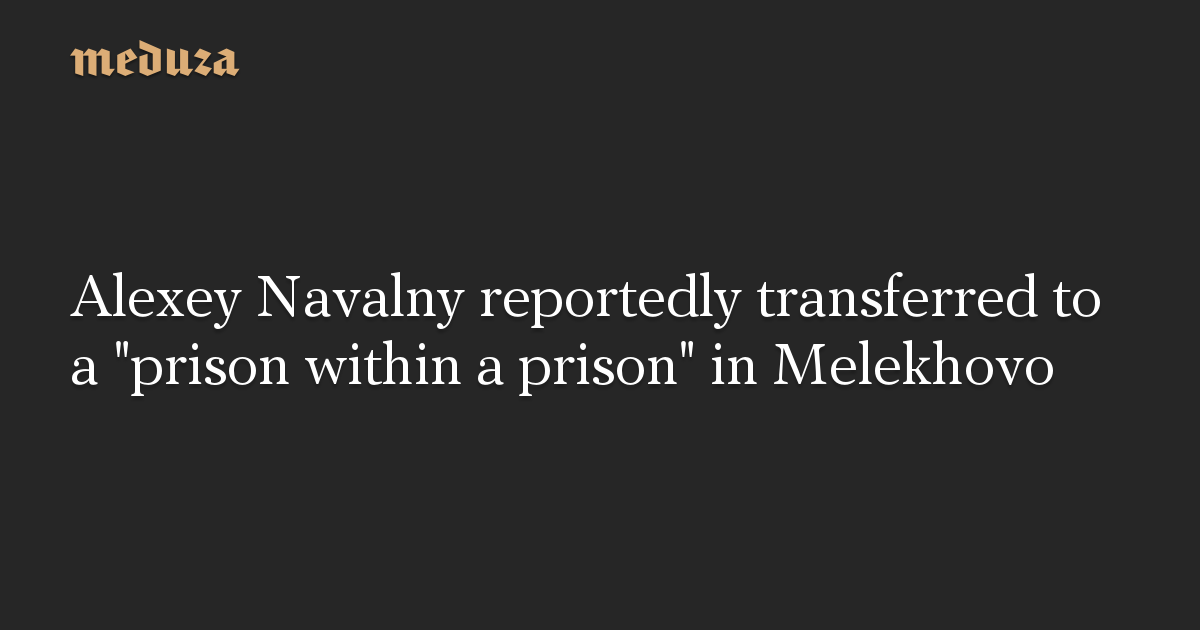 In early May, Navalny reported that he might be taken to Melekhovo. “My sentence hasn’t come into effect yet, but inmates at the maximum security prison have reported that a ‘prison within the prison’ is being prepared for me there,” said Navalny. He didn’t specify what they meant by a “prison within the prison.”