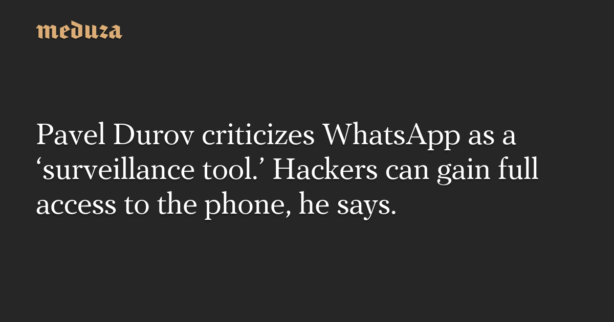 Pavel Durov criticizes WhatsApp as a ‘surveillance tool.’ Hackers can gain full access to the phone, he says.