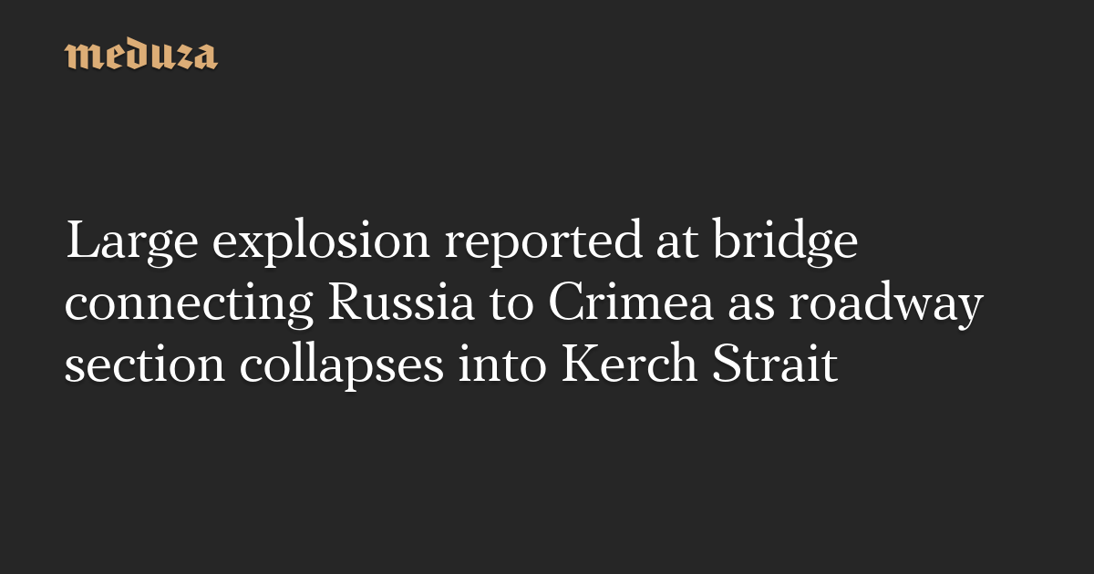 Large explosion reported at bridge connecting Russia to Crimea as roadway section collapses into Kerch Strait