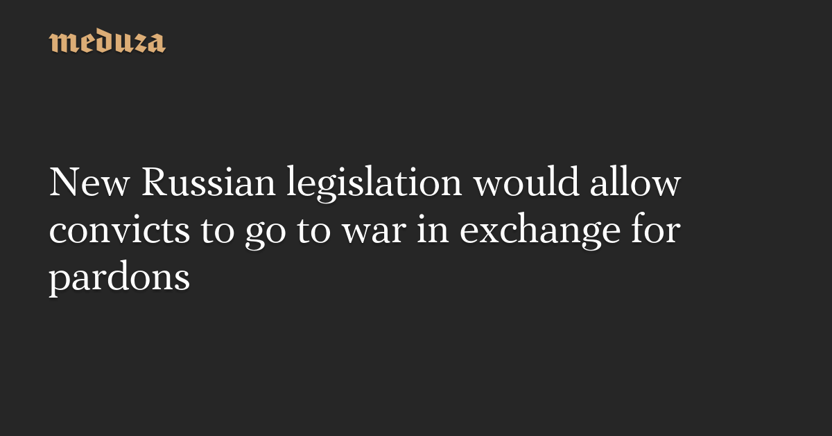 Under the bill, convicted soldiers and civilians could potentially earn pardons or sentence reductions for “bravery and heroism” on the battlefield, Kovitidi wrote on Telegram. She said the bill would only apply to convicts who committed crimes of “low and medium severity.” People convicted for protesting, “discrediting” or spreading “disinformation” about the Russian army, using Nazi symbolism, or calling for sanctions against Russia would not be eligible.