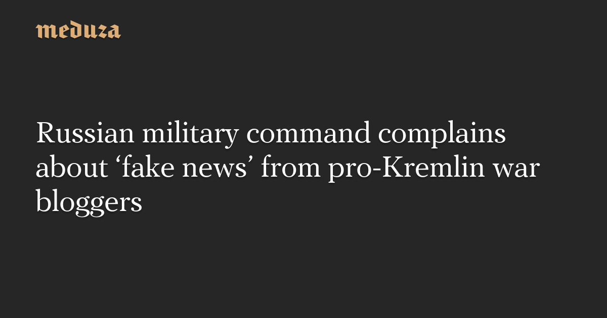 According to Mash, the outlets subject to official verification include: Igor Strelkov’s Telegram channel (Strelkov is the former defense minister of the annexed DNR); Semyon Pegov, journalist and creator of the WarGonzo project; Sergey Mardan, radio host for Komsomolskaya Pravda; the bloggers Yury Podolyak, Vladlen Tatarsky, Igor Dmitriev, and Kristina Potupchik; and the anonymous Telegram channels GreyZone and Rybar.