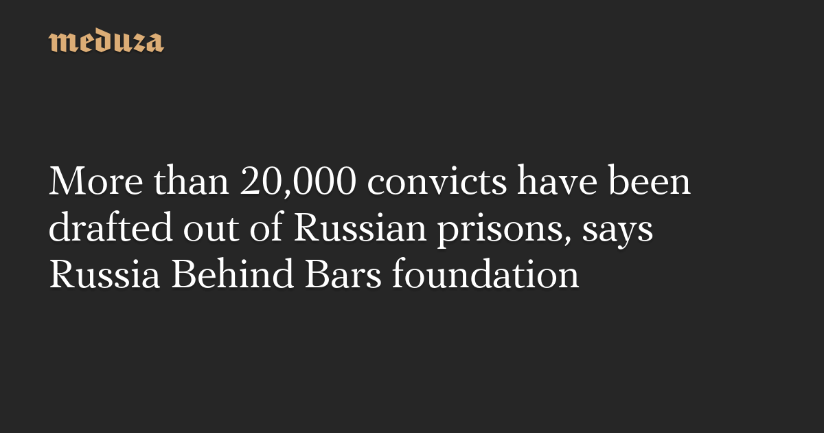 More than 20,000 convicts have been drafted out of Russian prisons, says Russia Behind Bars foundation
