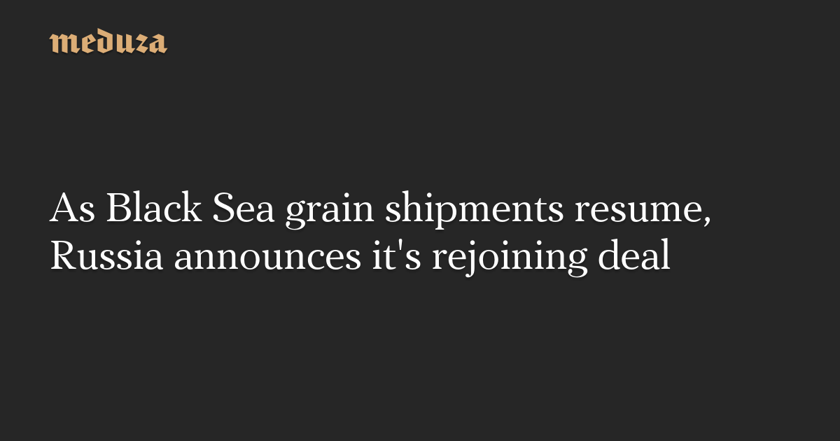 Turkish President Recep Tayyip Erdoğan confirmed on Wednesday afternoon that grain shipments under the Black Sea grain deal resumed at noon Moscow time.
