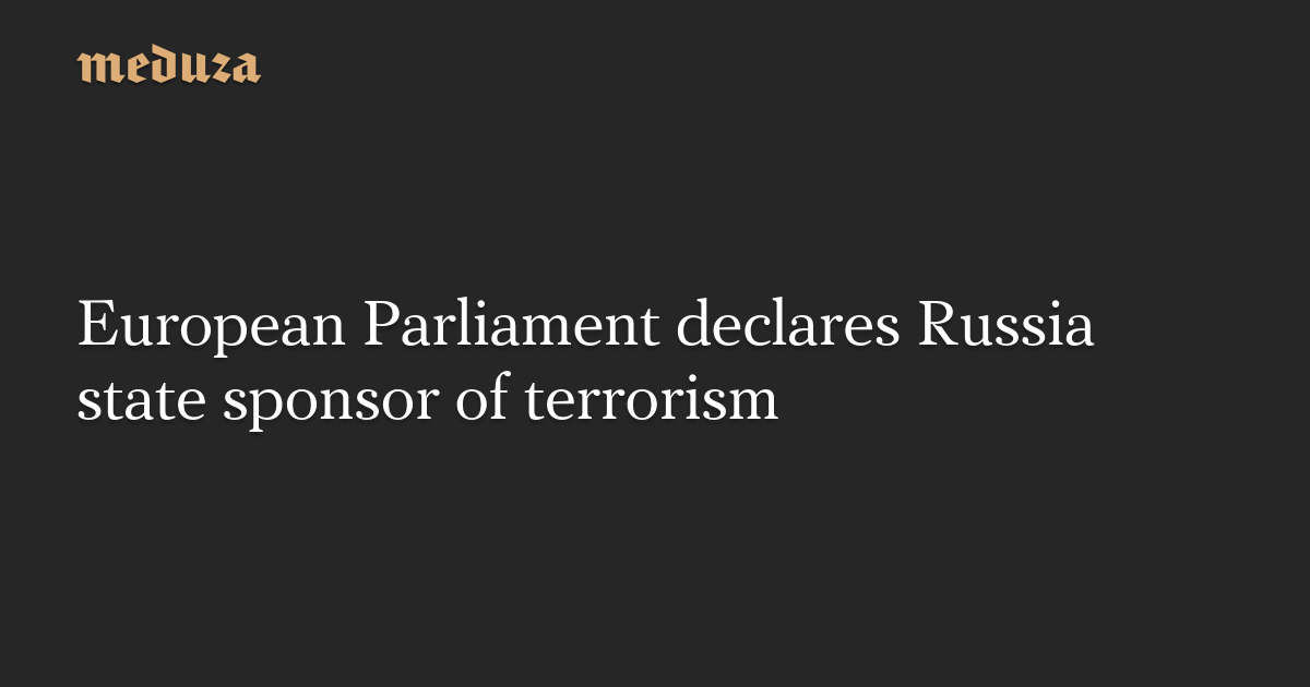 On November 23, the European Parliament adopted a resolution recognizing Russia as a state sponsor of terrorism. 494 deputies (out of 705) supported the resolution, and 58 deputies voted against it, according to a press release from the European Parliament.