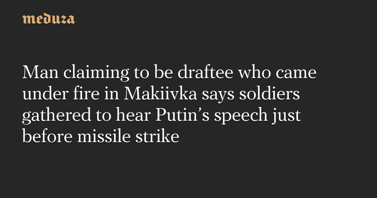 Man claiming to be draftee who came under fire in Makiivka says soldiers gathered to hear Putin’s speech just before missile strike