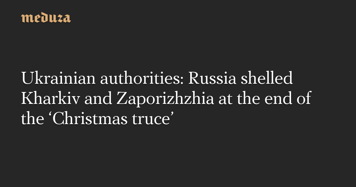 Ukrainian authorities: Russia shelled Kharkiv and Zaporizhzhia at the end of the ‘Christmas truce’