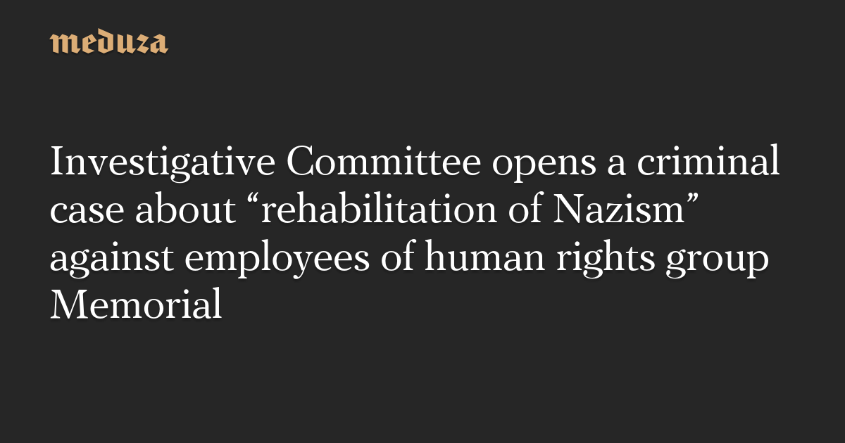 Investigative Committee opens a criminal case about “rehabilitation of Nazism” against employees of human rights group Memorial