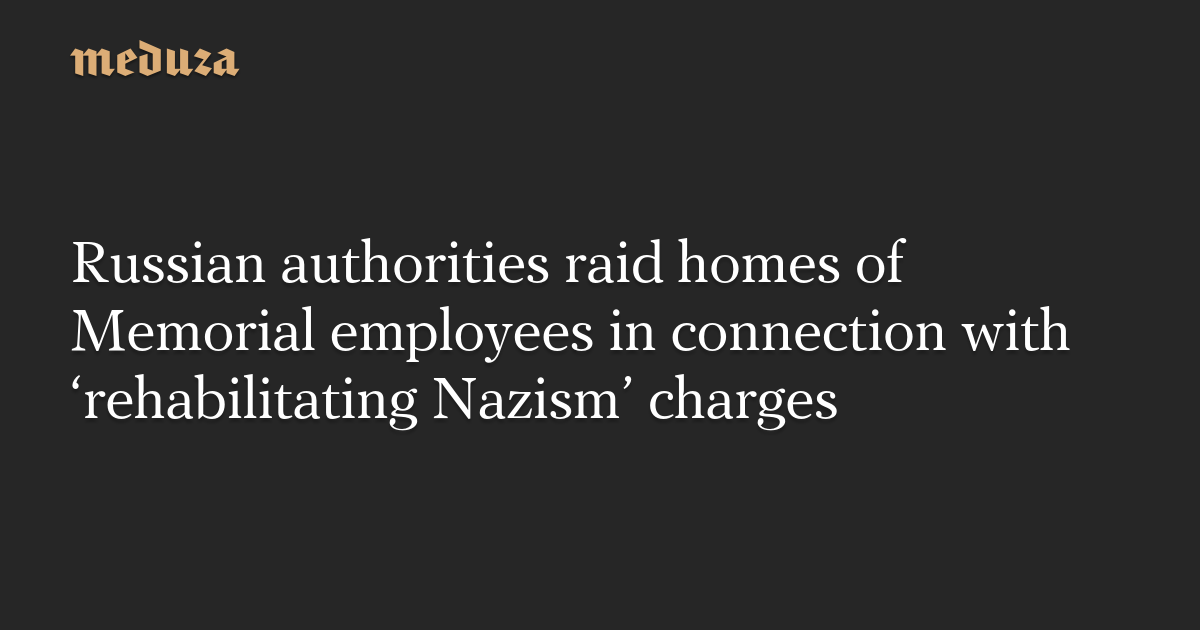 Russian law enforcement officers searched the homes of multiple employees of the human rights group Memorial on Tuesday morning in connection with felony charges of “rehabilitating Nazism” that were filed against the organization earlier this month.