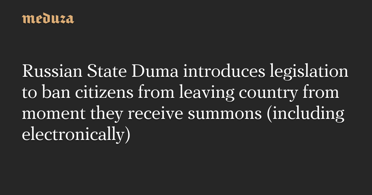 Russian State Duma introduces legislation to ban citizens from leaving country from moment they receive summons (including electronically)