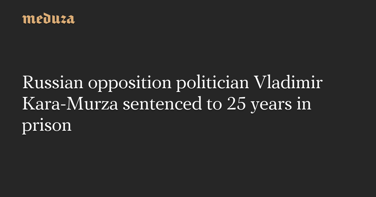 A Moscow court has sentenced Russian opposition politician Vladimir Kara-Murza to 25 years in prison, granting prosecutors’ request, the independent outlet Mediazona reported on Monday.