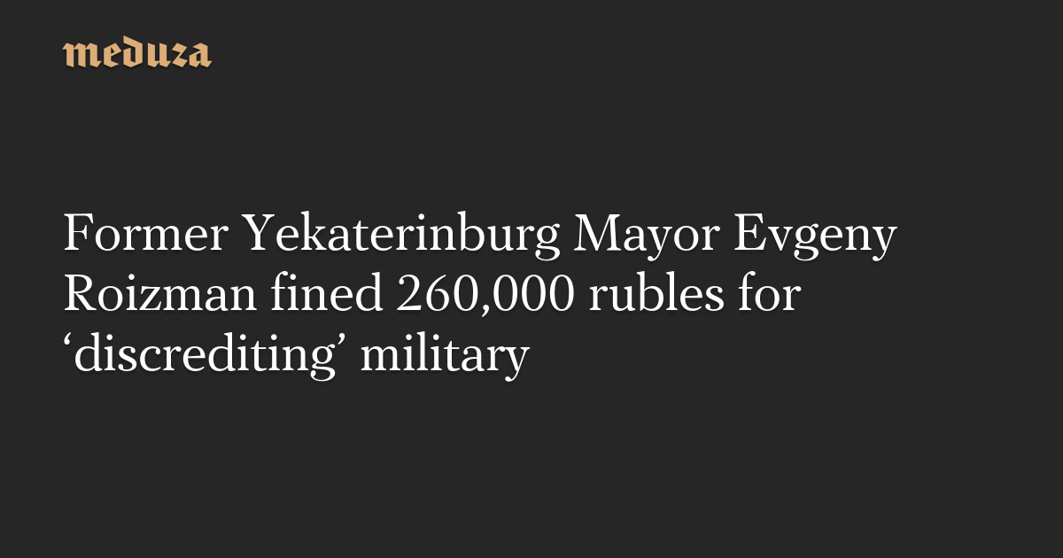 A Yekaterinburg court imposed a fine of 260,000 rubles ($3,260) against the city’s former mayor Evgeny Roizman on Friday for allegedly “discrediting” the Russian military, granting the request made by prosecutors on Thursday.