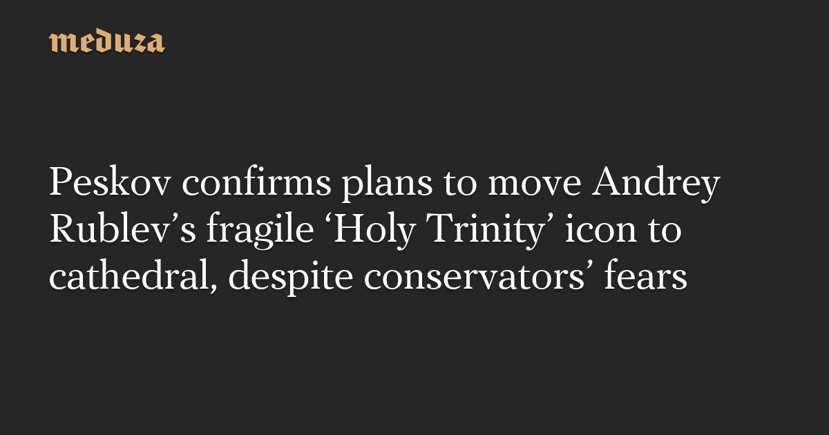 Peskov confirms plans to move Andrey Rublev’s fragile ‘Holy Trinity’ icon to cathedral, despite conservators’ fears