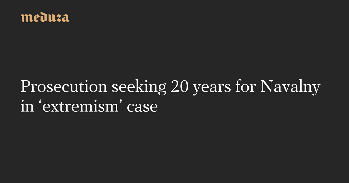 Alexey Navalny tweeted that the state prosecutor is seeking for him to be sentenced to 20 years in prison in the “extremism” case against him. According to Navalny, the prosecutor is demanding that he serve his sentence in a special regime colony.