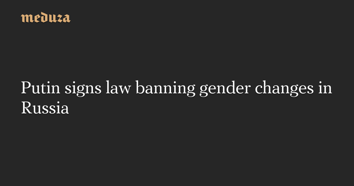 Vladimir Putin has signed a bill into law that bans gender changes in Russia.