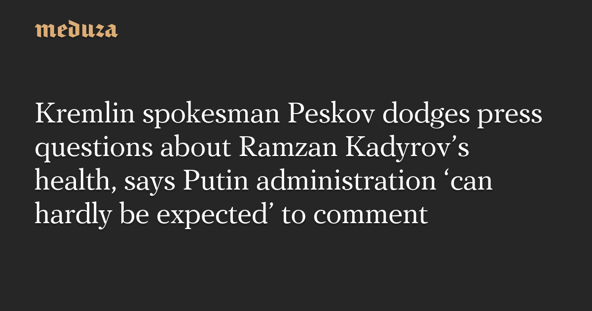 Kremlin spokesman Peskov dodges press questions about Ramzan Kadyrov’s health, says Putin administration ‘can hardly be expected’ to comment