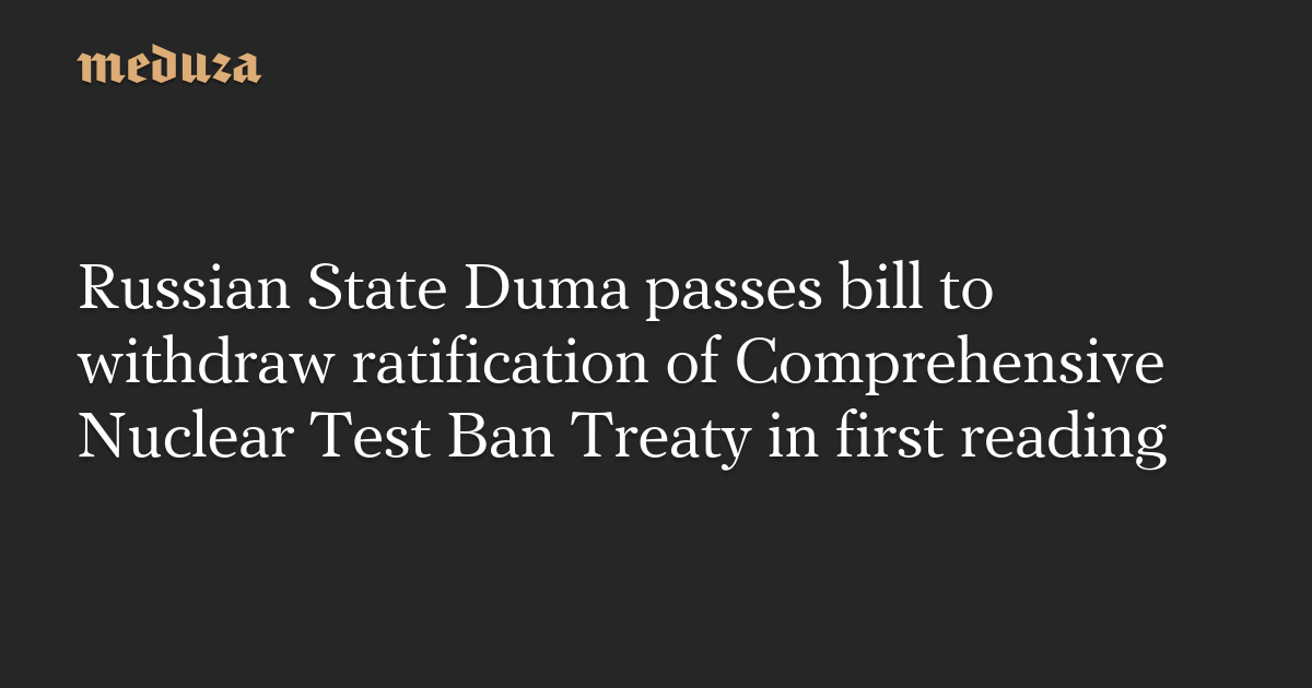 Russian State Duma passes bill to withdraw ratification of Comprehensive Nuclear Test Ban Treaty in first reading
