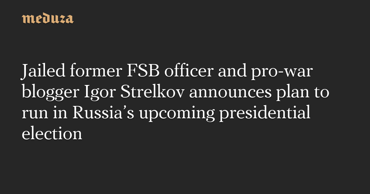 Jailed former FSB officer and pro-war blogger Igor Strelkov announces plan to run in Russia’s upcoming presidential election