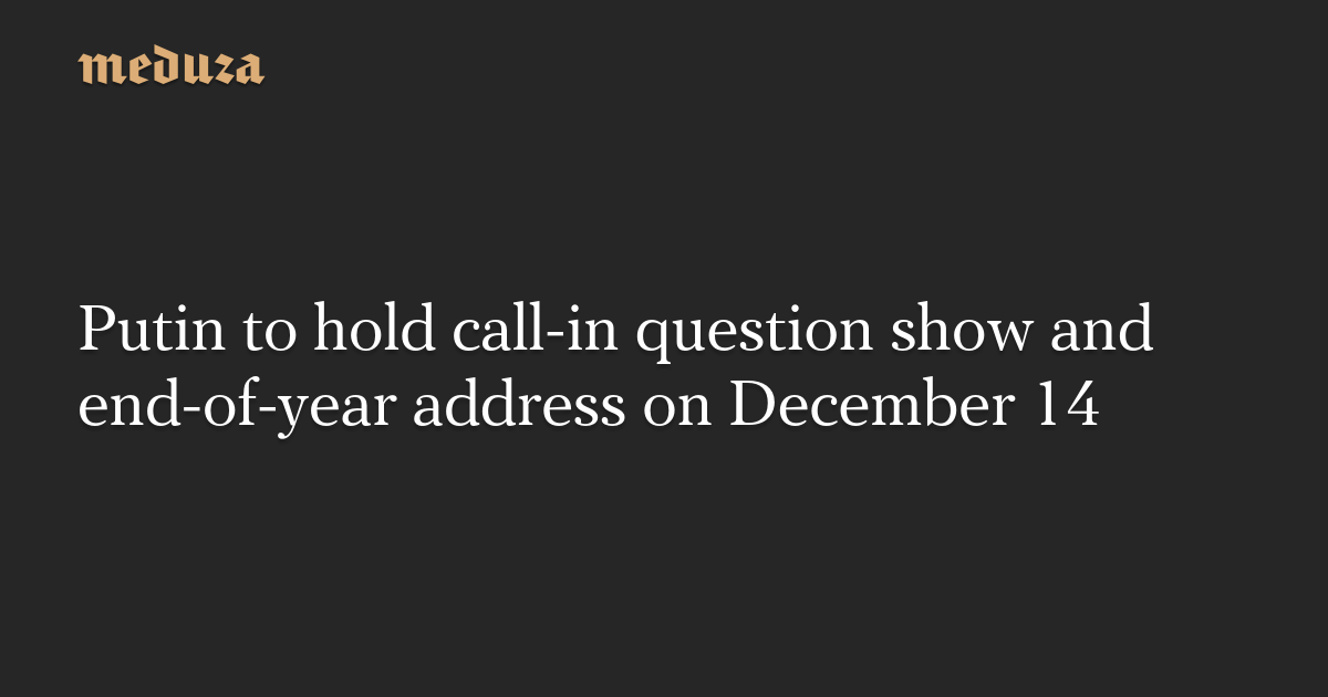 In 2022, amid the first year of the full-scale Russian invasion of Ukraine, Putin canceled several of his traditional speeches and addresses, including his previously annual call-in show “Direct Line with Vladimir Putin” and his traditional end-of-year press conference.