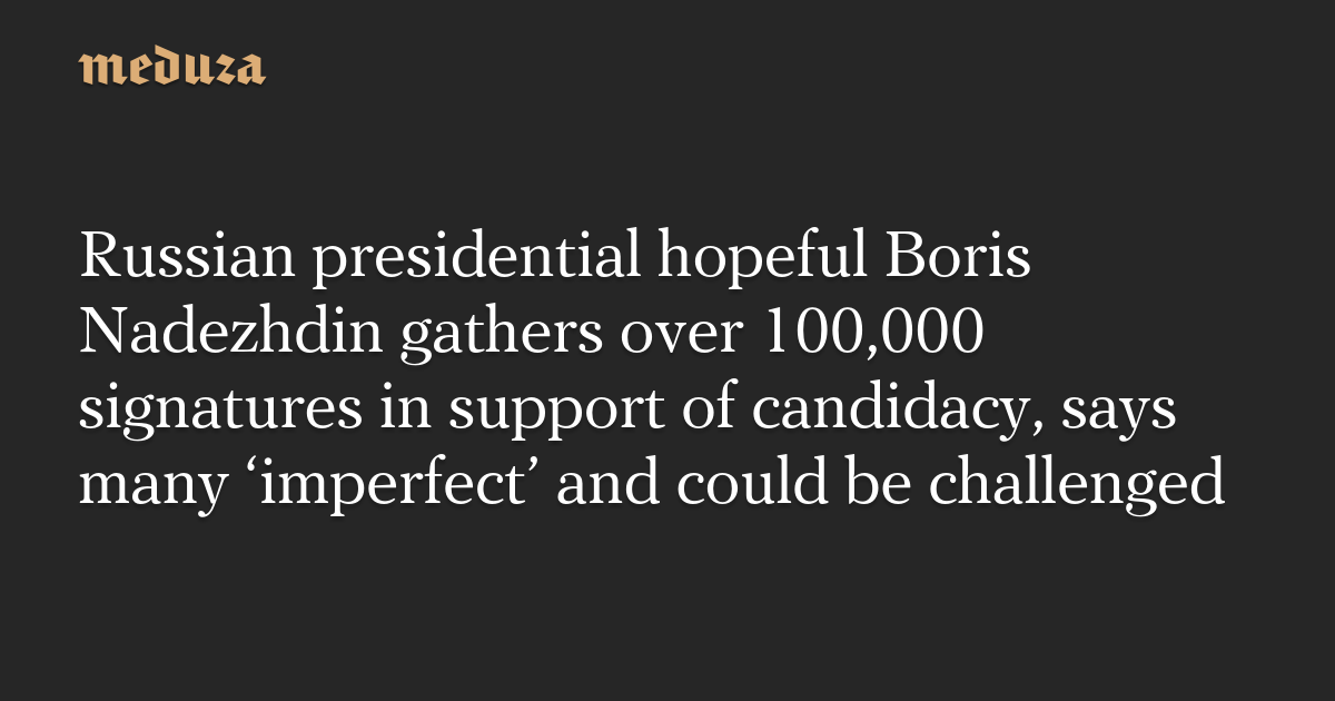A message on Nadezhdin’s Telegram channel reads: “We’ve already collected 101,000 signatures. These signatures are not perfect! We’ll need to submit 105,000 flawless signatures to the Central Election Commission. Ones that can’t be challenged.”
