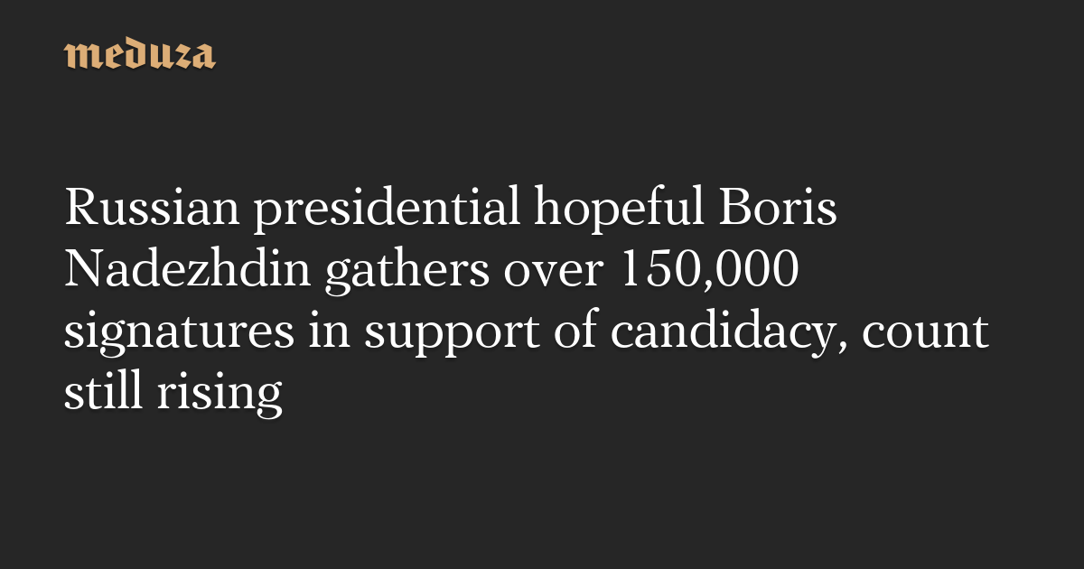 Russian presidential hopeful Boris Nadezhdin gathers over 150,000 signatures in support of candidacy, count still rising