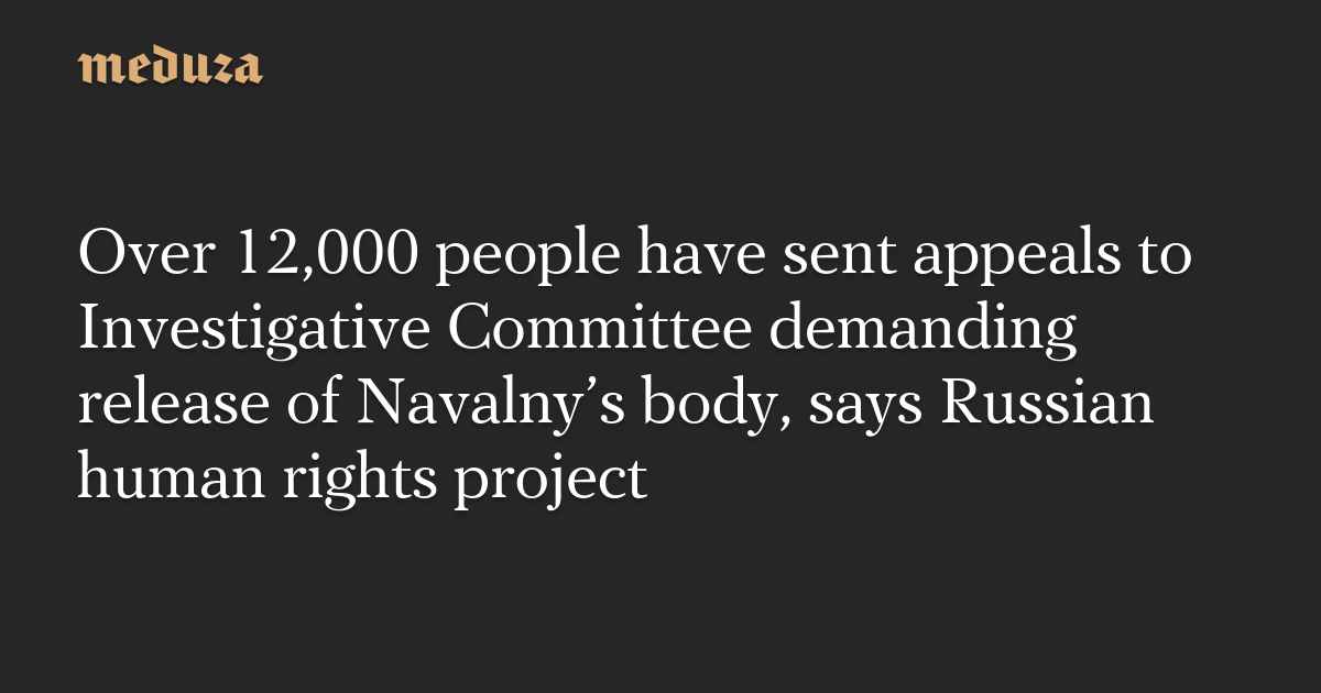 More than 12,000 people have sent appeals to Russia’s Investigative Committee demanding that Alexey Navalny’s body be released to his family, reports the human rights project OVD-Info.