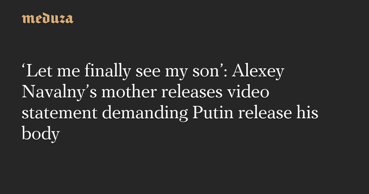 Alexey Navalny’s mother, Lyudmila Navalnaya, has released a video statement addressed to Vladimir Putin. The clip was recorded outside of the prison in northern Russia where Navalny died.