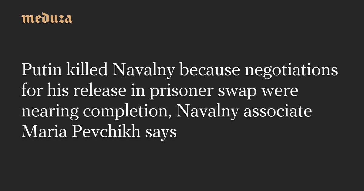 Maria Pevchikh, the chairwoman of Alexey Navalny’s Anti-Corruption Foundation, said in a video statement published on Monday that Vladimir Putin killed Navalny because Navalny’s team had “secured a decision on his exchange.”
