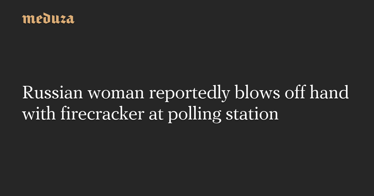 A woman lost part of her arm on Sunday after lighting a large firecracker in the bathroom of a polling station in the Russian city of Perm, the Telegram channel Baza reported, citing preliminary information.
