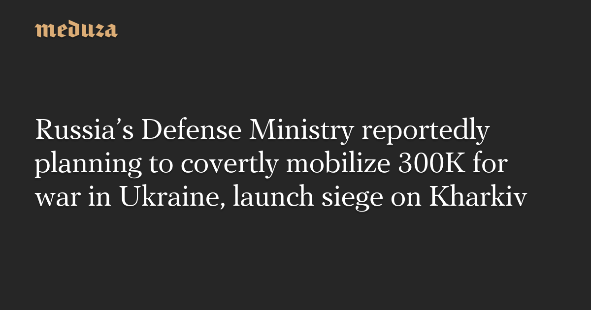 Russia’s Defense Ministry reportedly planning to covertly mobilize 300K for war in Ukraine, launch siege on Kharkiv