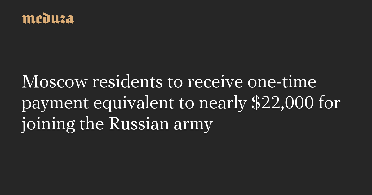 Moscow residents to receive one-time payment equivalent to nearly $22,000 for joining the Russian army