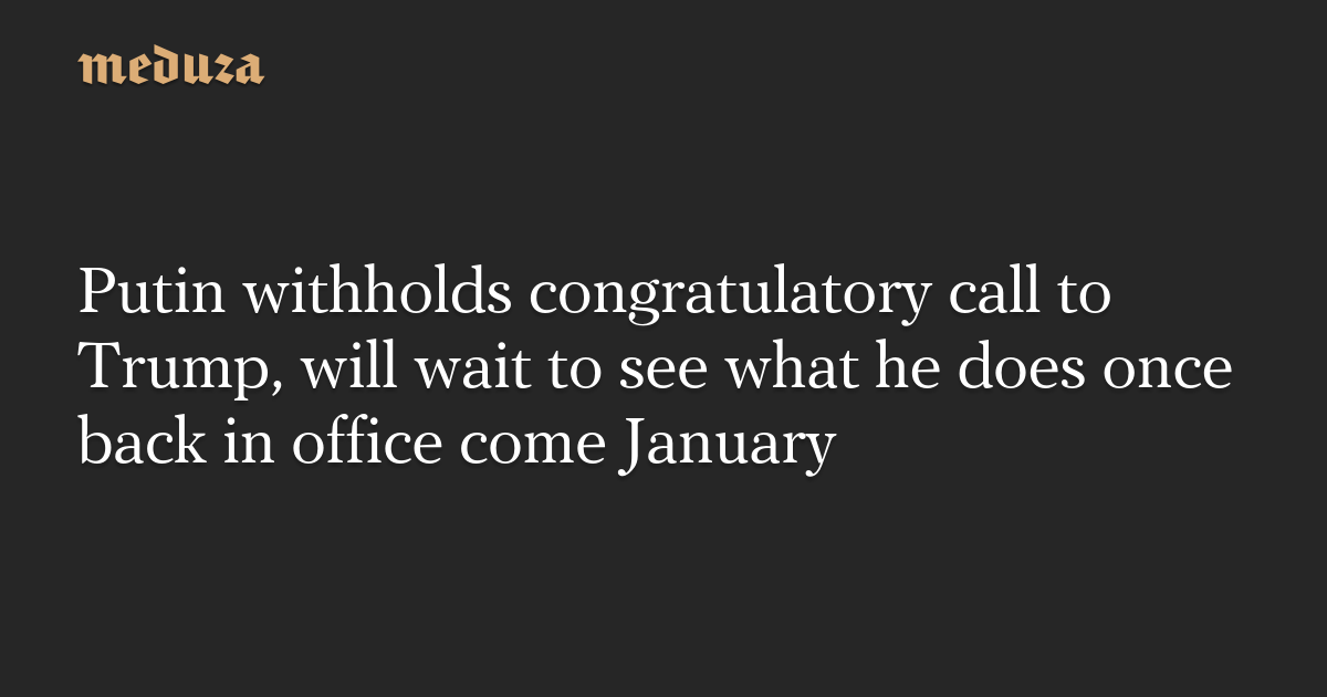 Putin withholds congratulatory call to Trump, will wait to see what he does once back in office come January