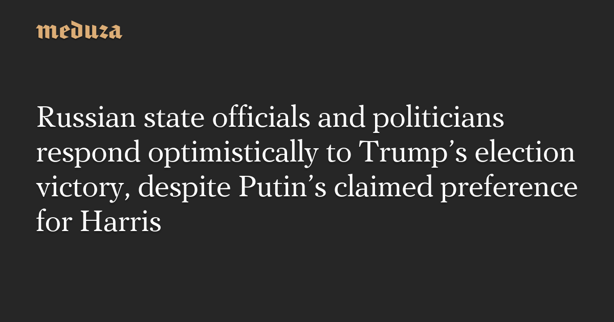 Russian state officials and politicians respond optimistically to Trump’s election victory, despite Putin’s claimed preference for Harris