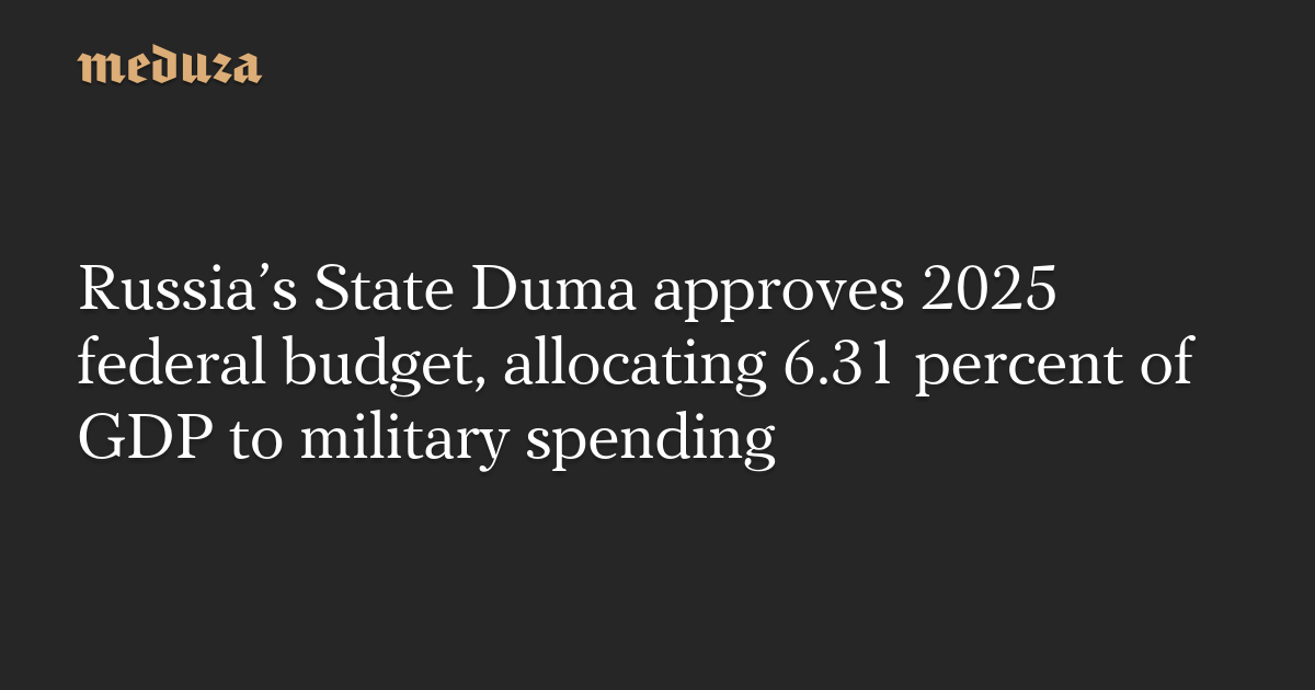 Russia’s State Duma approves 2025 federal budget, allocating 6.31 percent of GDP to military spending