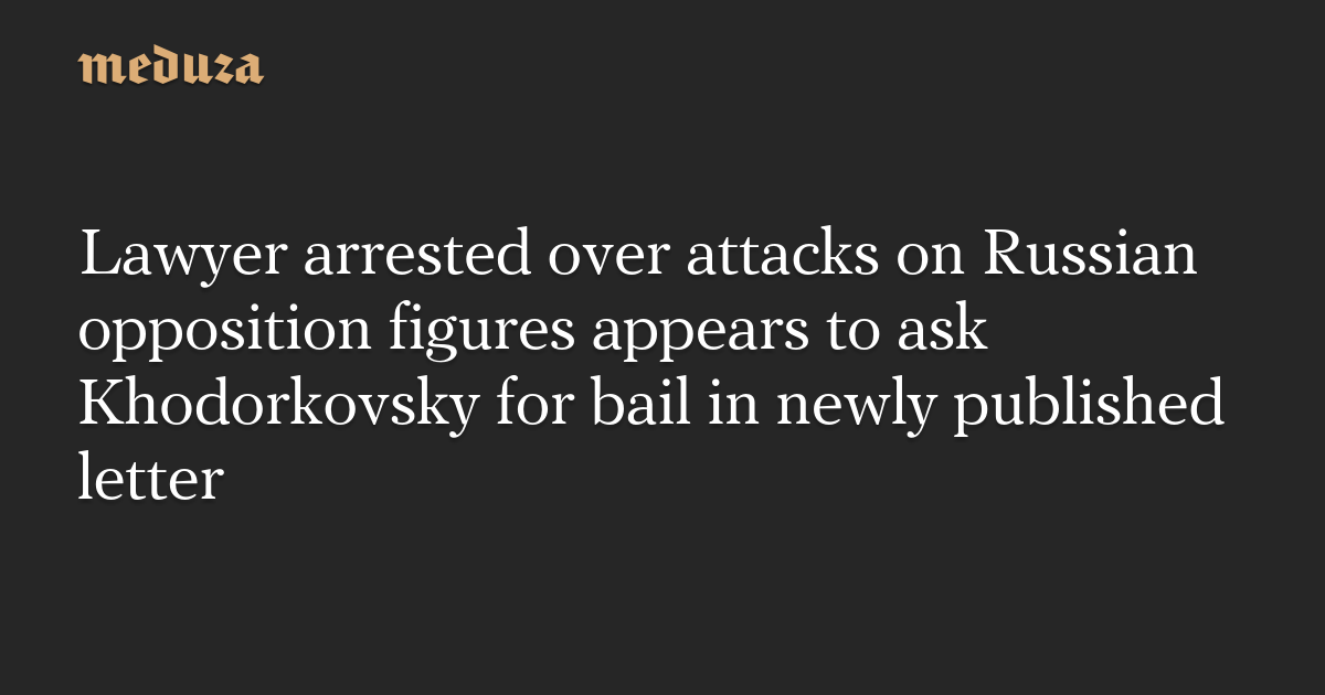 Lawyer arrested over attacks on Russian opposition figures appears to ask Khodorkovsky for bail in newly published letter